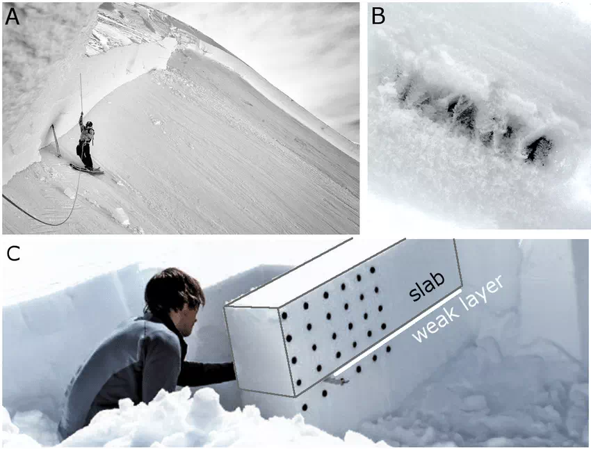 Les spécialistes parlent de manteau neigeux stratifié. Certaines couches adhèrent mal entre elles. Une zone de faiblesse se crée en profondeur, invisible à l’œil nu.